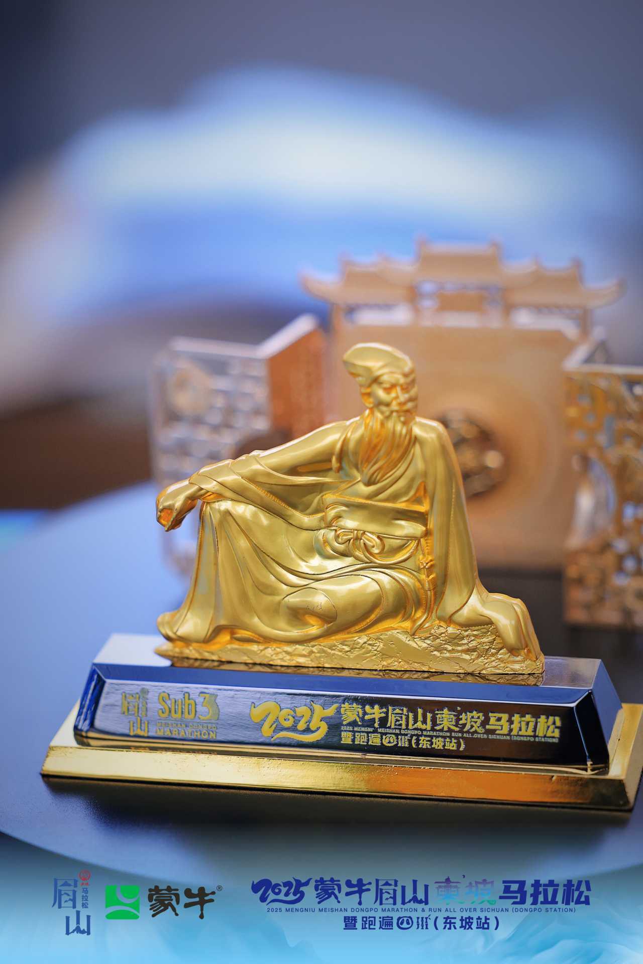专为“破三”(成绩突破3小时)选手定制的东坡盘陀坐像主题奖杯,将竞技荣耀与文化致敬完美结合,颇具收藏价值。