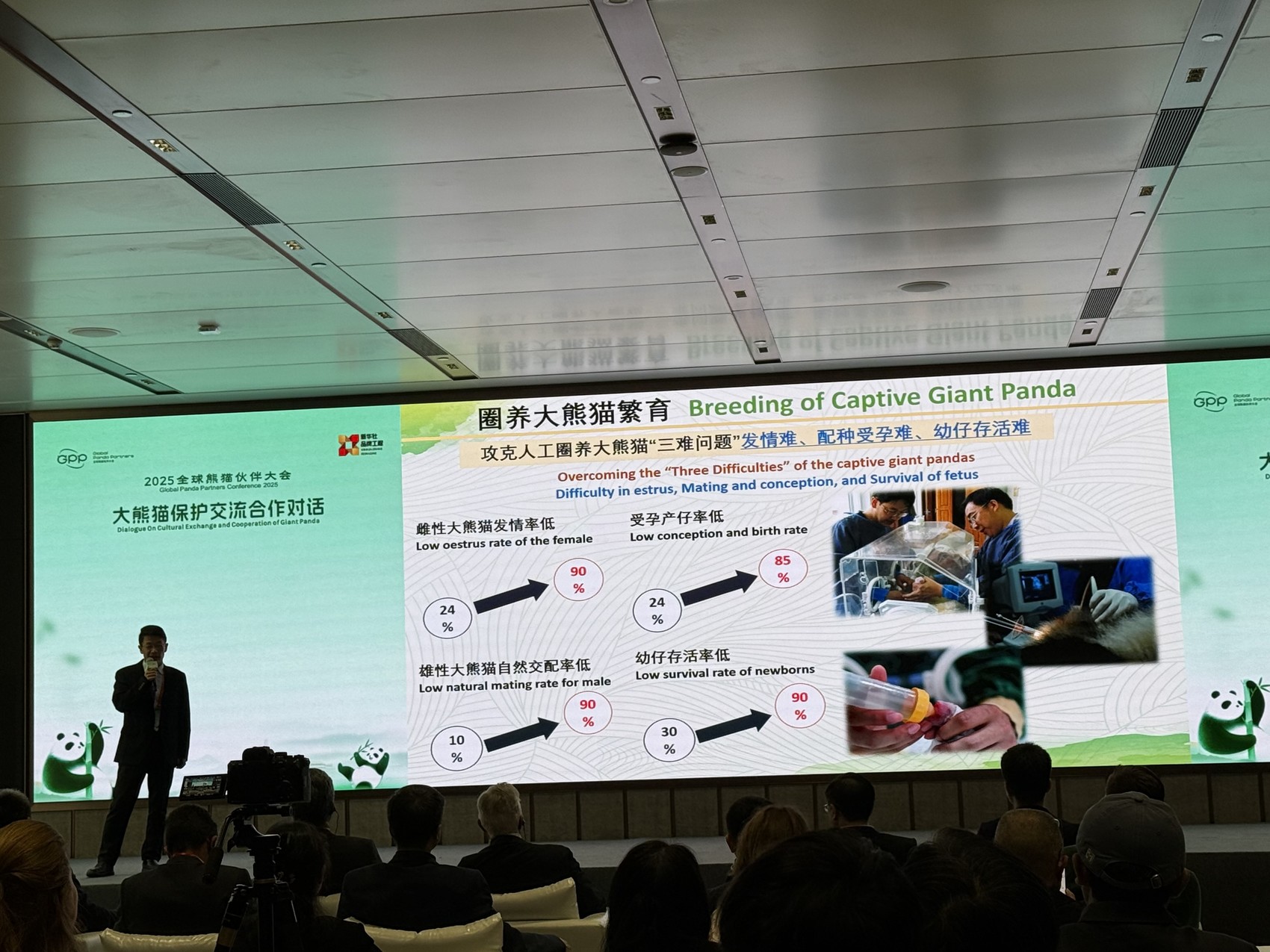 大熊猫圈养种群何以实现高质量、可持续增长?中外专家在大会配套活动大熊猫保护交流合作对话上,共同揭晓了背后的科技密码与合作故事。