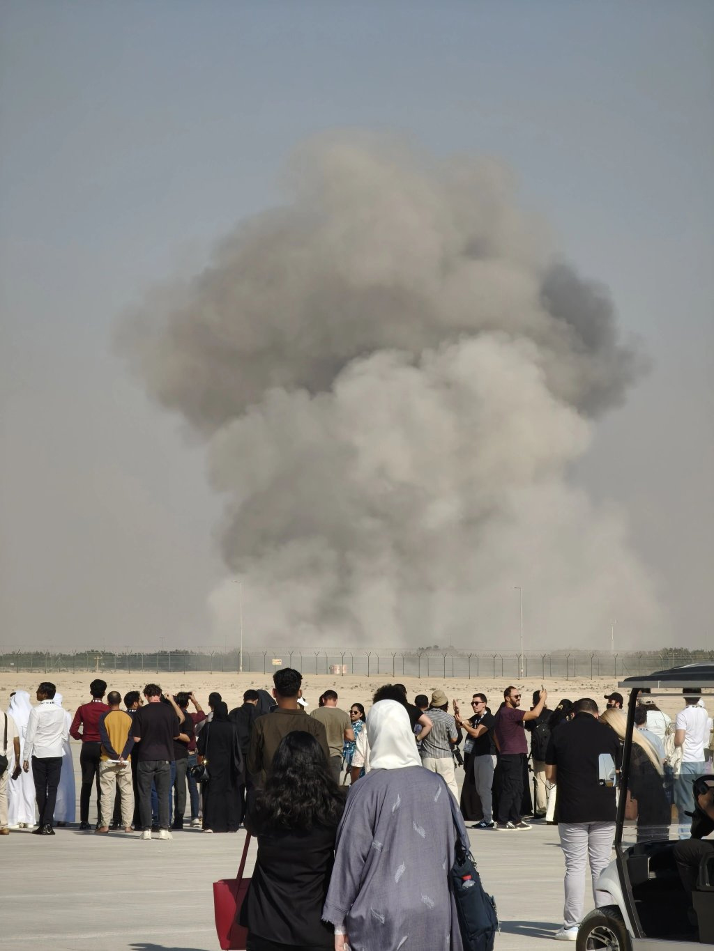 11月21日,在阿联酋迪拜,飞机坠毁现场冒出滚滚浓烟。