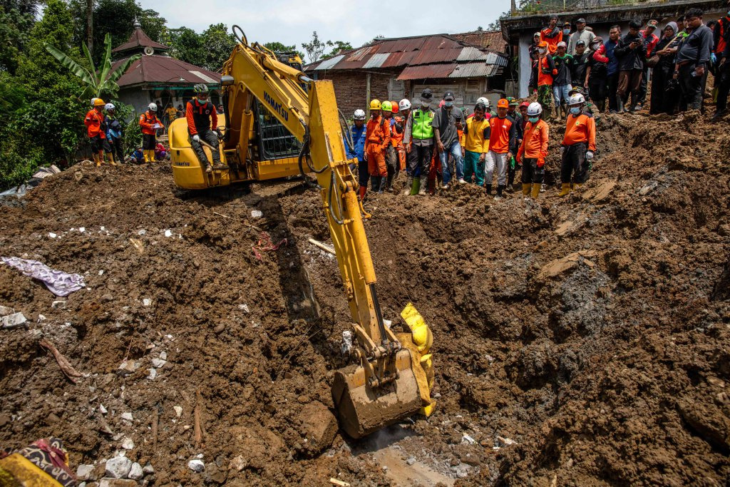 11月20日,救援人员在印度尼西亚中爪哇省山体滑坡现场工作。