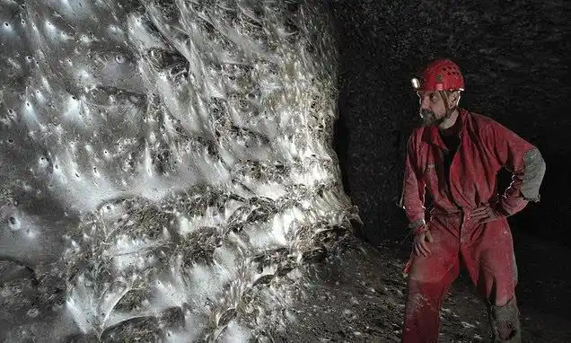 弗罗莫奈尔峡谷洞穴中发现的巨型蛛网。图据《地下生物学》论文