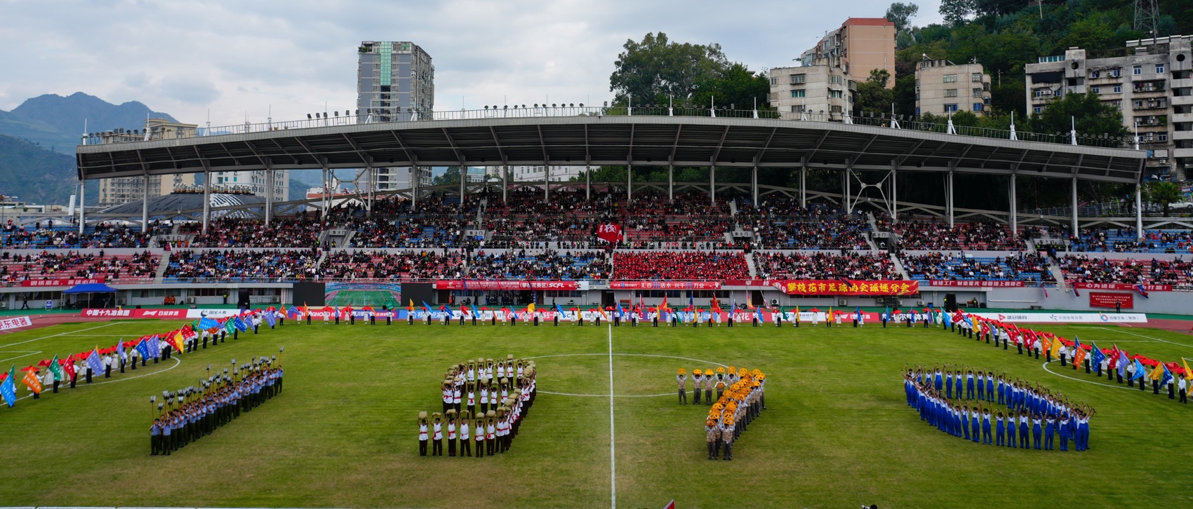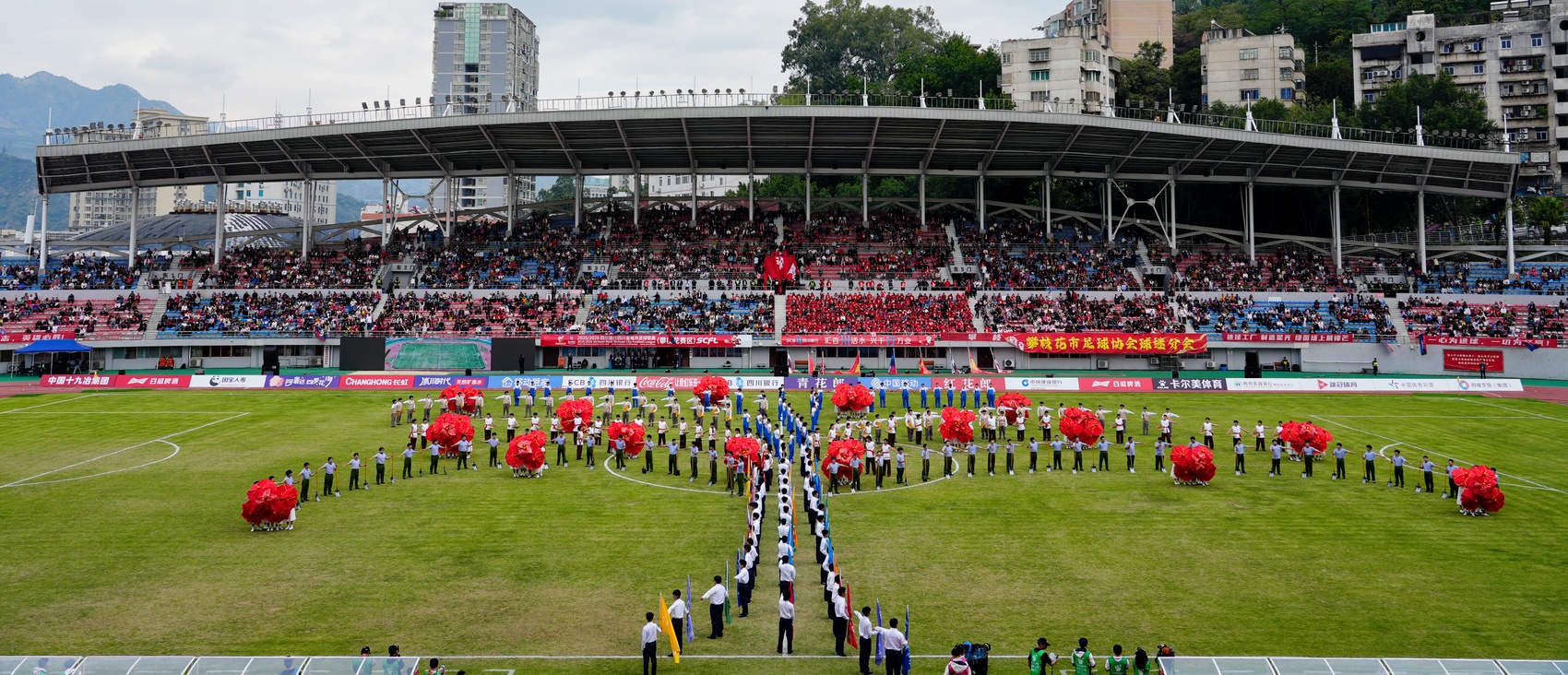 11月22日下午3点,攀枝花市体育场内座无虚席。“川超”第十轮比赛中,攀枝花攀钢钢铁勇士队主场对战眉山射天狼队。比赛开始前,一场浓缩攀枝花60年开发建设历程的大型主题表演震撼上演。千余名演员以艺术语言,为观众献上一场跨越时空的城市记忆盛宴。