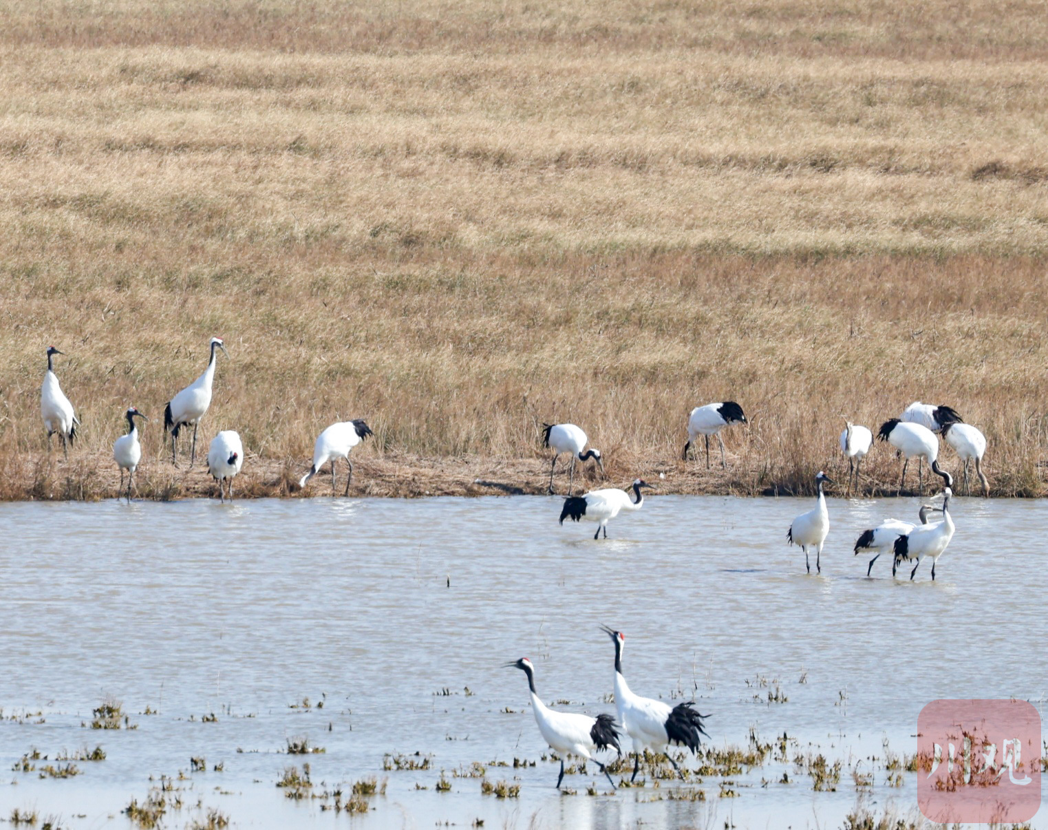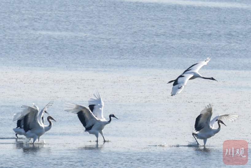 在盐城市丹顶鹤湿地生态旅游区,丹顶鹤群成冬日的一道靓丽风景。