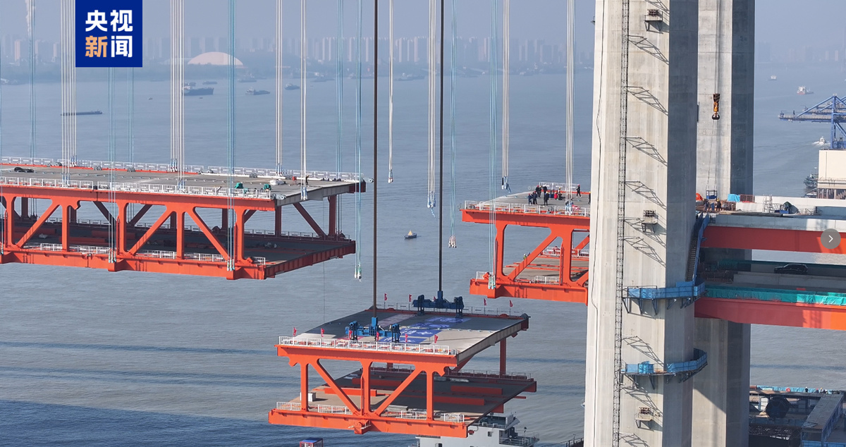 ▷22日,世界最大跨度四主缆悬索桥——湖北燕矶长江大桥顺利合龙,万里长江再添一道“飞虹”。