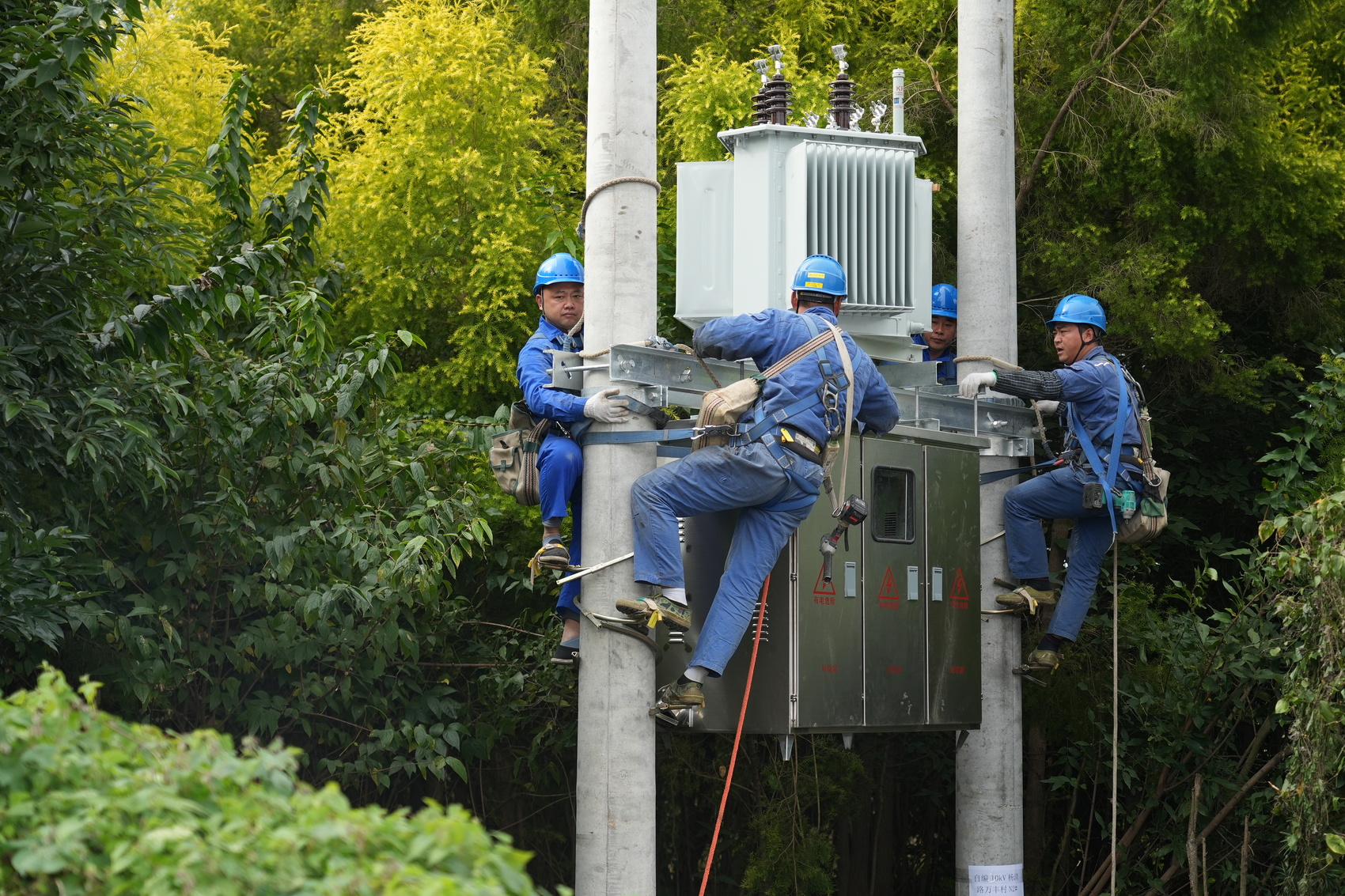 当天,在中江县东北镇胜天村,国网中江县供电公司施工人员正在进行老旧变压器进行拆除、新变压器安装投运工作,为当地韭菜规模化种植等支柱产业注入充沛“电动力”。
