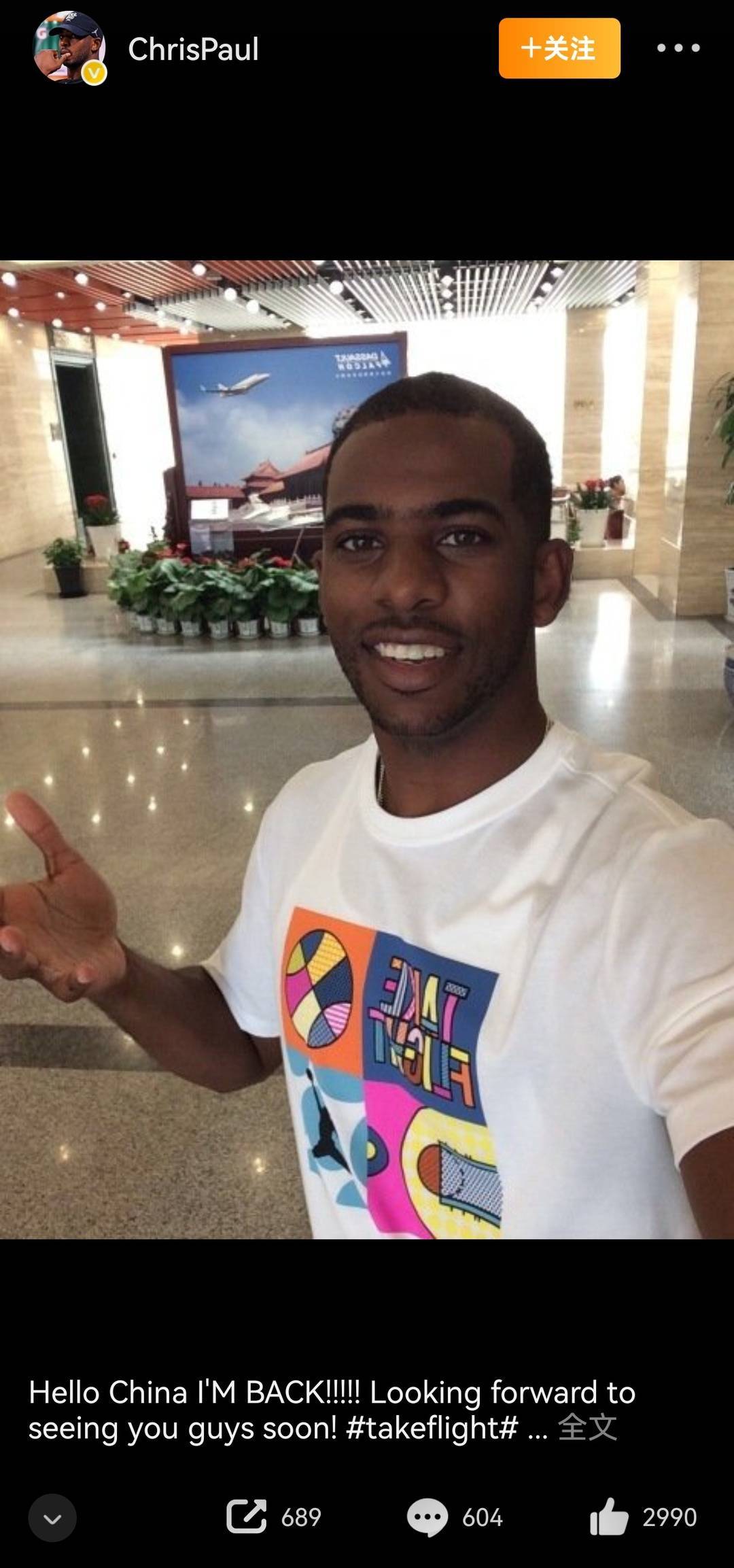 2014年,保罗再次访问中国,参加了Jordan品牌组织的“飞翔之旅”活动,访问了北京、上海和香港三地,与中国的篮球爱好者们密切互动。