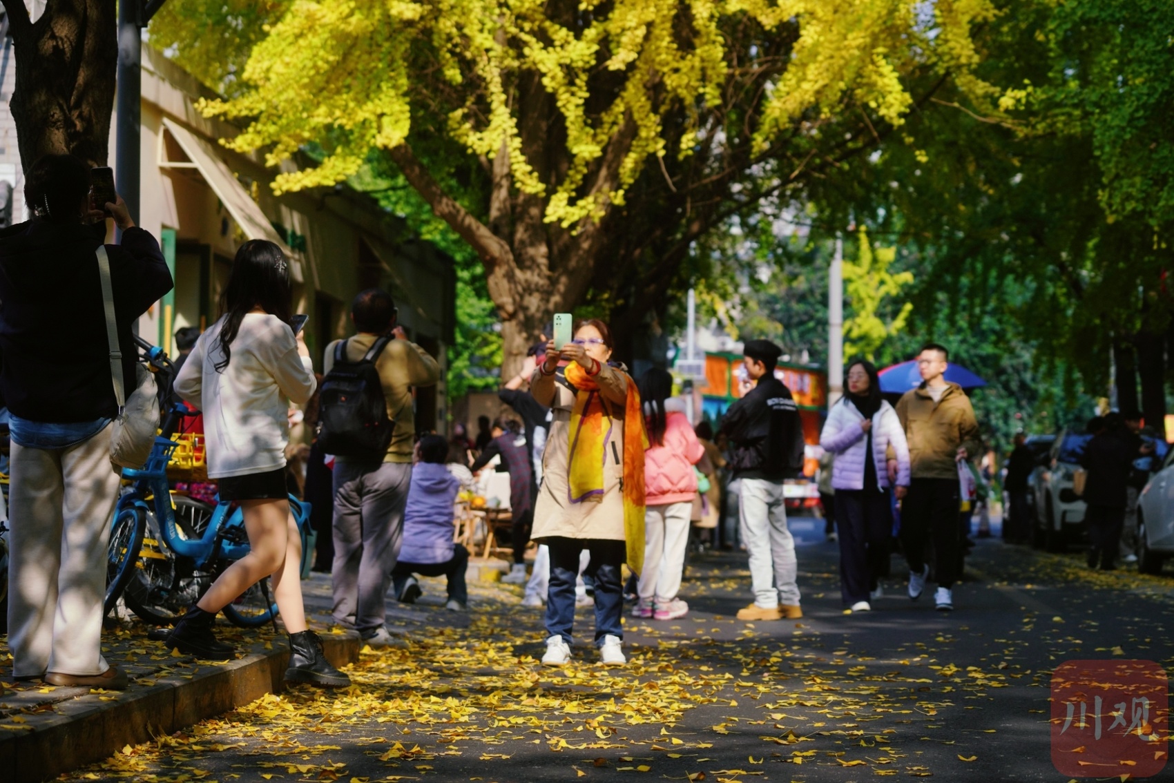 满地“黄金叶”,市民感受限定浪漫