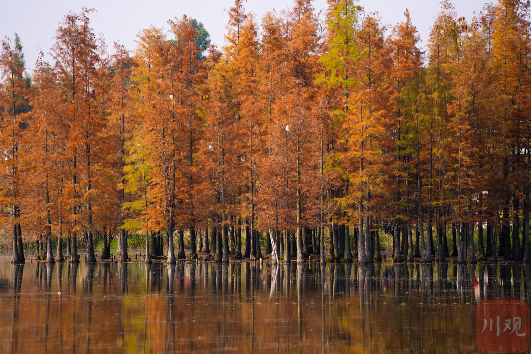 白鹭湾湿地公园内的水杉林进入最佳观赏季。