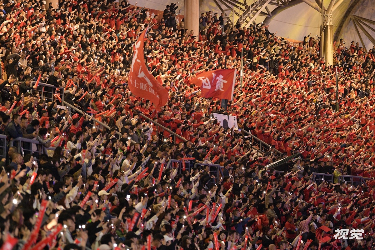 11月9日晚,自贡灯城燊龙队以2∶0战胜泸州窖香队。现场球迷为球队倾情助威。