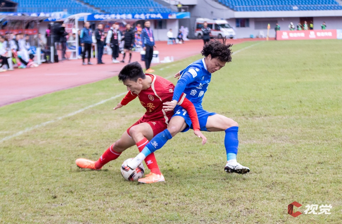 11月10日,遂宁舍得干队与广安板楯蛮队在比赛中激烈拼抢。