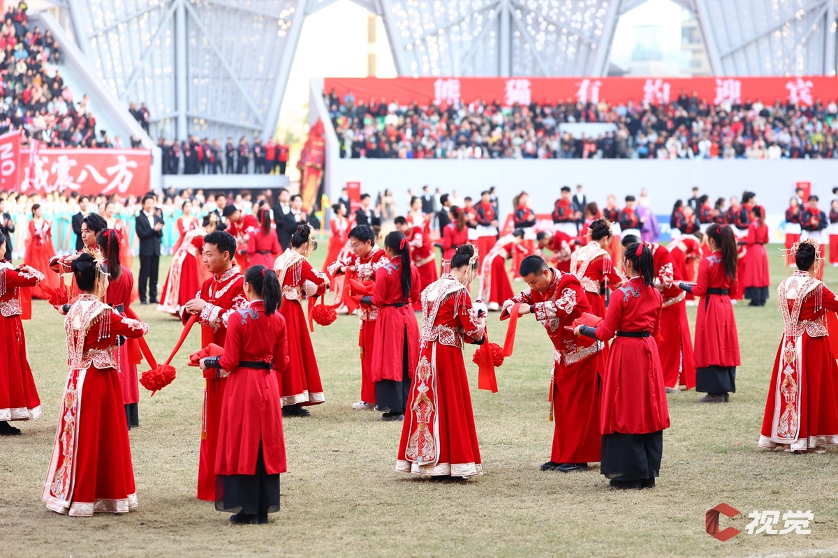 11月23日,“川超”绵阳赛区收官战打响前,百位绵阳新人齐聚赛场,举行了一场别开生面的集体婚礼。