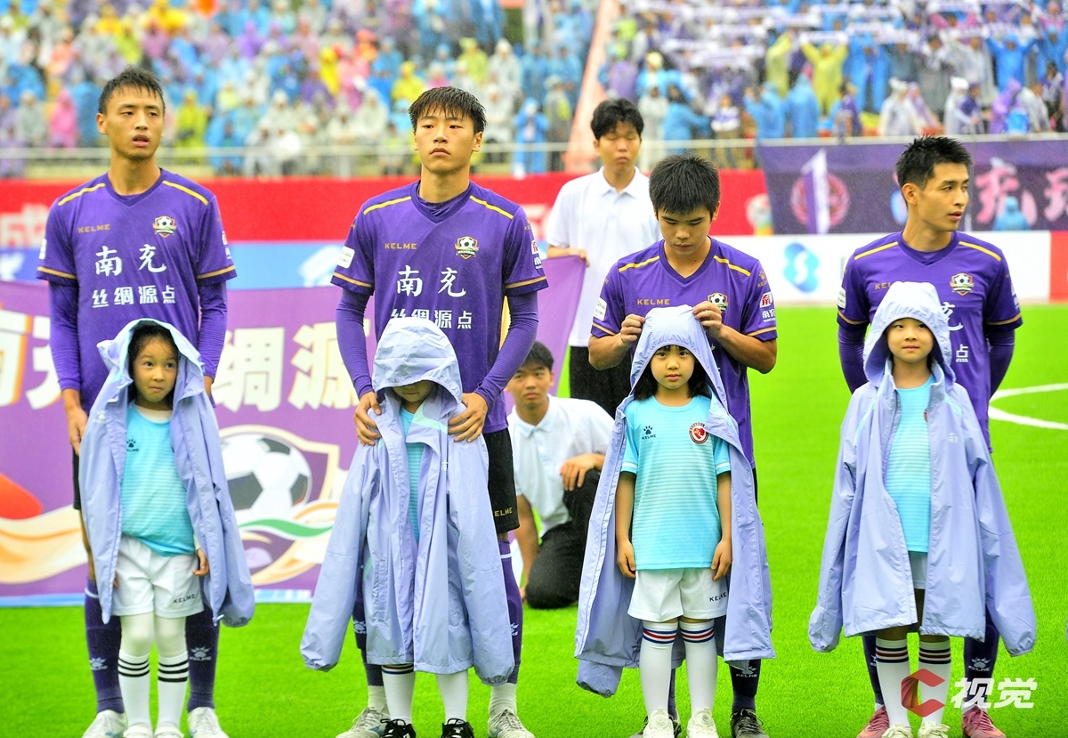 10月19日,南充丝绸源点队主场迎战成都锦城队。赛前突降小雨,南充队球员主动脱下外套为小球童遮雨,场面温馨。