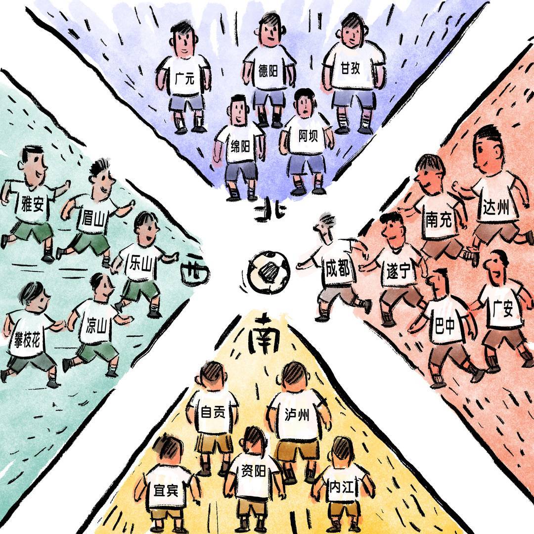 具体分布如下(排序不分先后),东区:遂宁、南充、达州、广安、巴中;西区:雅安、眉山、乐山、攀枝花、凉山;南区:自贡、泸州、宜宾、资阳、内江;北区:绵阳、阿坝、广元、德阳、甘孜。经现场抽签,成都落位东区,将与遂宁、南充、达州、广安、巴中同区竞技。