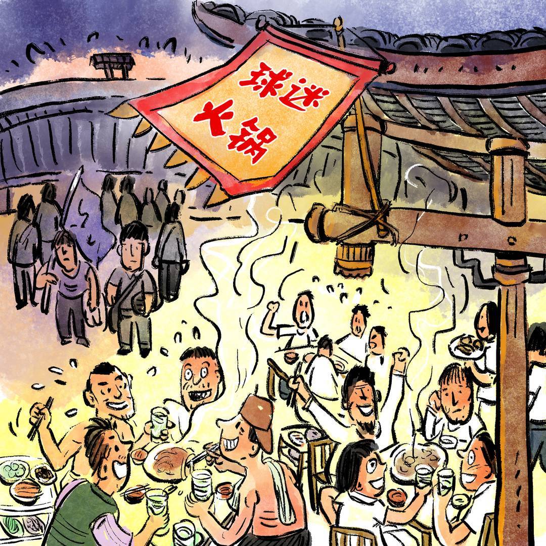 那时的激情,不止在球场。比赛结束,无论输赢,三五成群的球迷总会涌向路边的火锅店。“来一锅红汤,毛肚、鸭血、黄喉走起!”一碗冰粉下肚,话题还是“姚夏那个突破差一点就进了”“魏大侠的任意球太狠了”。烟火气里,足球与生活早已融为一体。