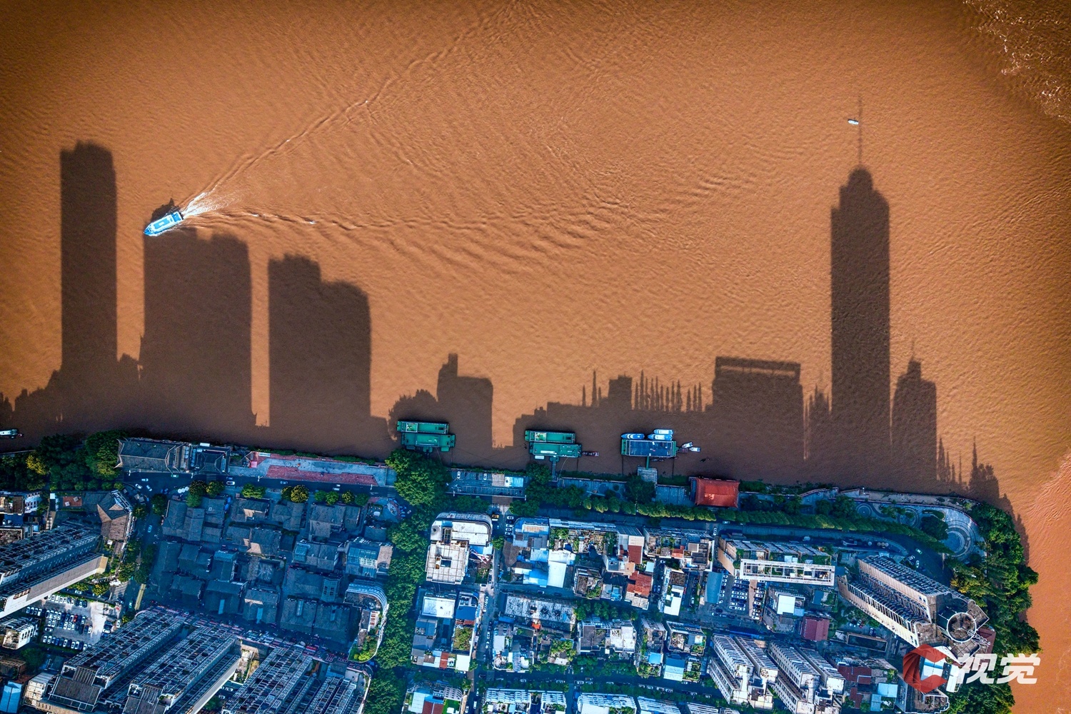 从高空俯瞰金沙江、岷江、长江交汇处,三江六岸城市建设与生态环境美如画。