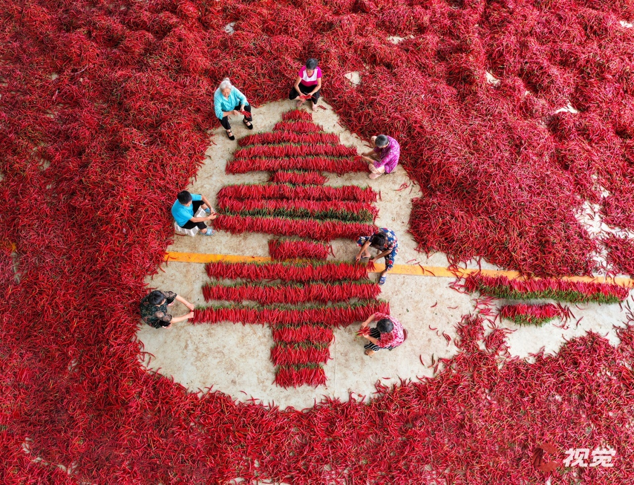 达州东部经开区麻柳镇辣椒喜迎丰收,村民在辣椒基地精心挑选着红艳艳的”舌尖精灵”。
