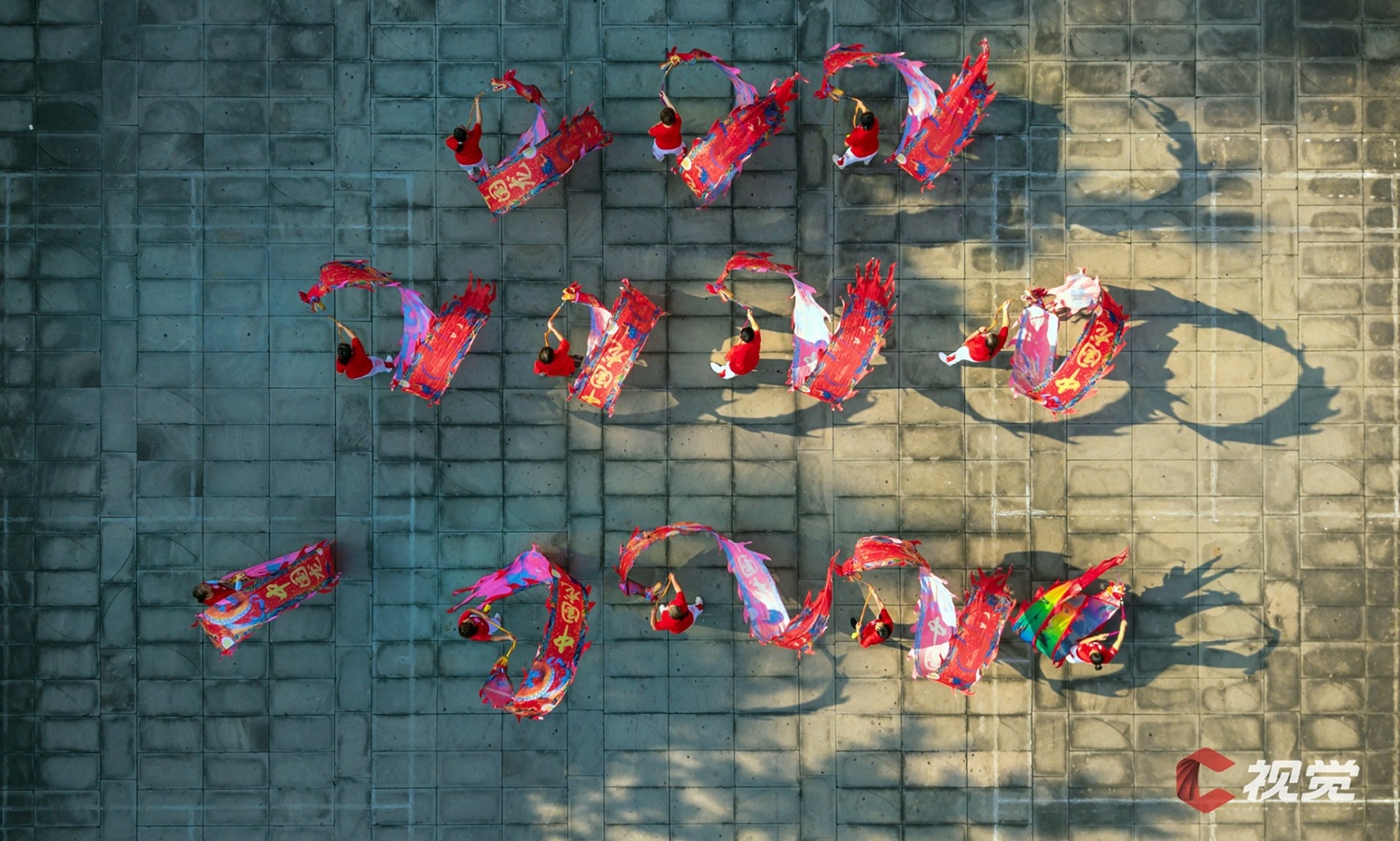 资阳市安岳县紫竹公园文庙院内,一群老人挥舞彩带龙锻炼身体,乐享晚年生活。