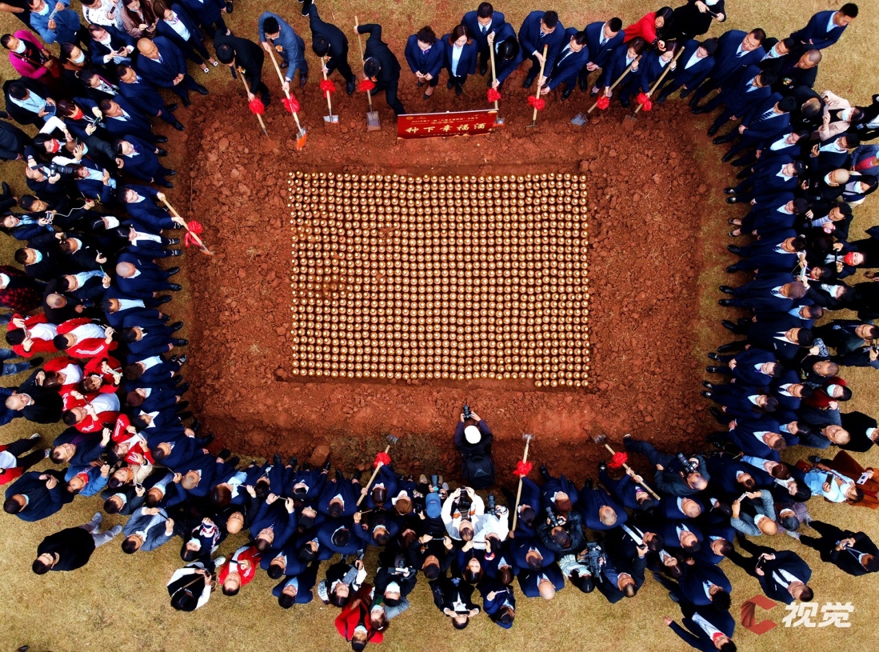 农历九月初九,成都市金堂县梨花沟举行种酒文化节,大家共同扬铲种下999瓶酒祈福。