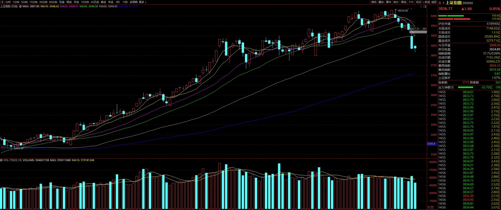 近期,上证指数反复上试4000点都未能有效站稳,导致筹码开始松动,短短数日便快速跌去近200点,并在本轮反弹行情中首次将60日均线击穿。