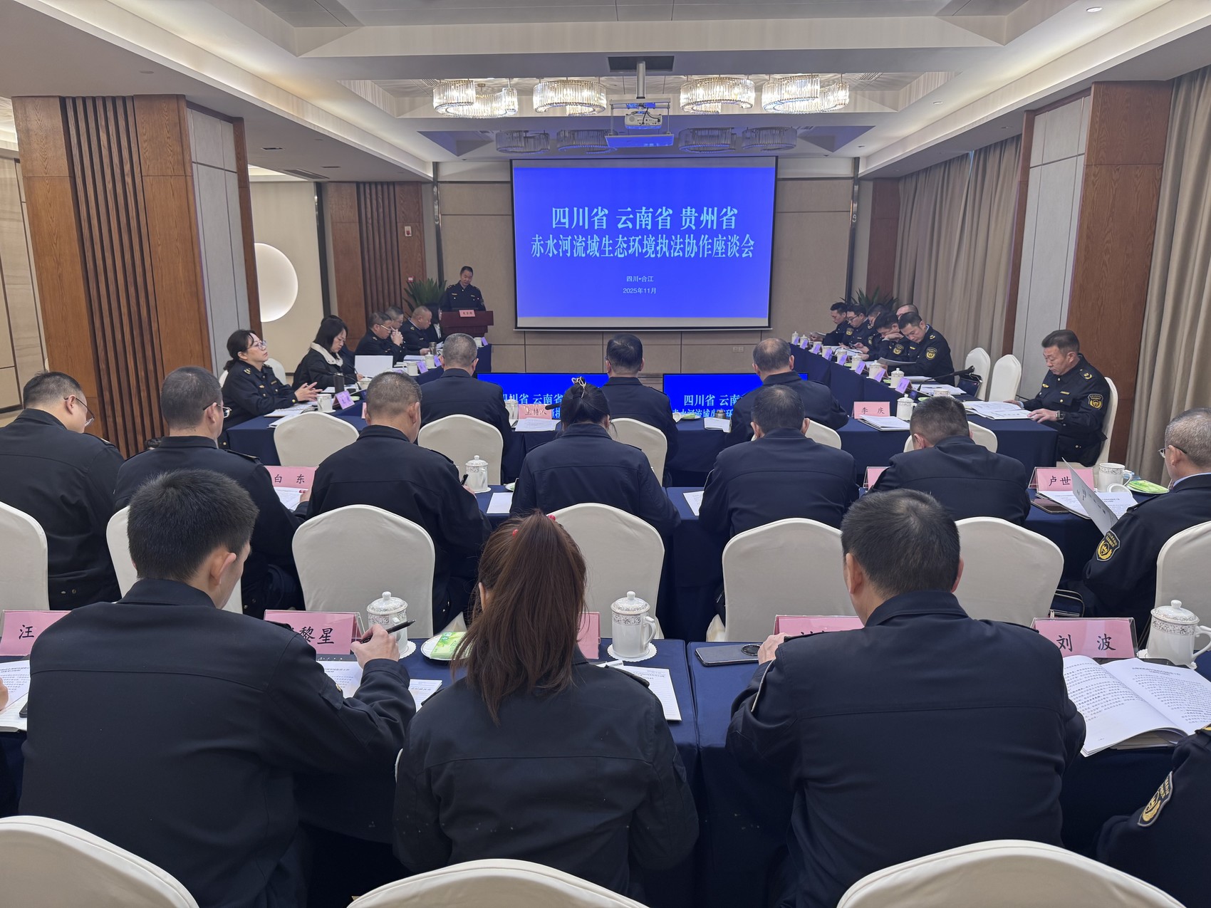 当天的座谈会上,川滇黔三省生态环境执法机构围绕赤水河流域执法协作展开讨论交流,旨在进一步取长补短,有效解决联合执法的“真空地带”。会上,川滇黔三地围绕赤水河流域执法工作进行案例分享。泸州市古蔺县生态环境保护综合行政执法大队大队长杨怀春分享案例,“通过前期精密布控、调查多向突破、法律精准适用三个方面,我们成功查办县内一家酒业公司私设暗管排放水污染物环境违法案件,在完全闭环的证据链前,该企业负责人无可狡辩接受处罚。”杨怀春提到,赤水河流域水脉相连,单一地区的执法难以根治跨区域污染,该案件办理中,若能提前与废水接收地执法部门联动核查,或可更早发现违法线索,因此他建议“三地建立‘联合巡查+线索互转+结果互通”的流域监管模式,让违法排污行为无处遁形。