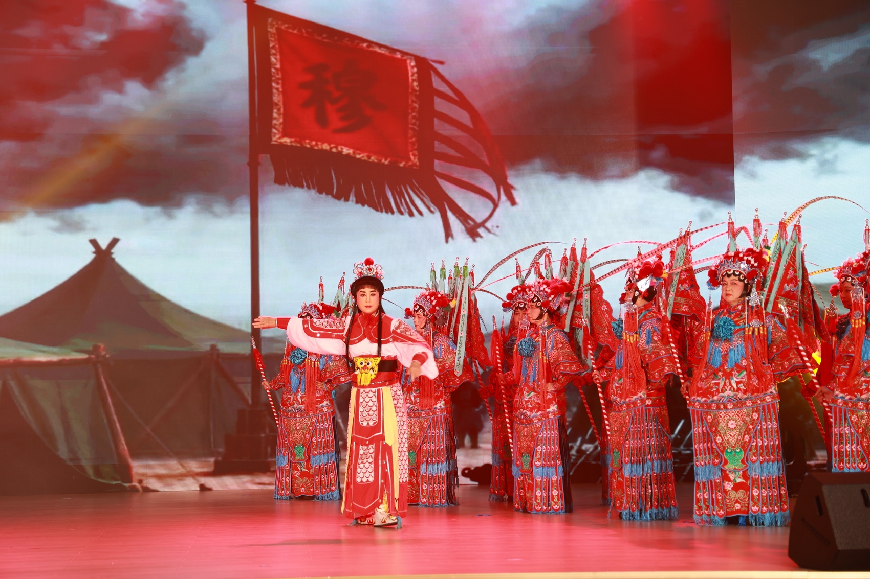 市级文化特派员况艳带领团队表演《穆桂英挂帅》。