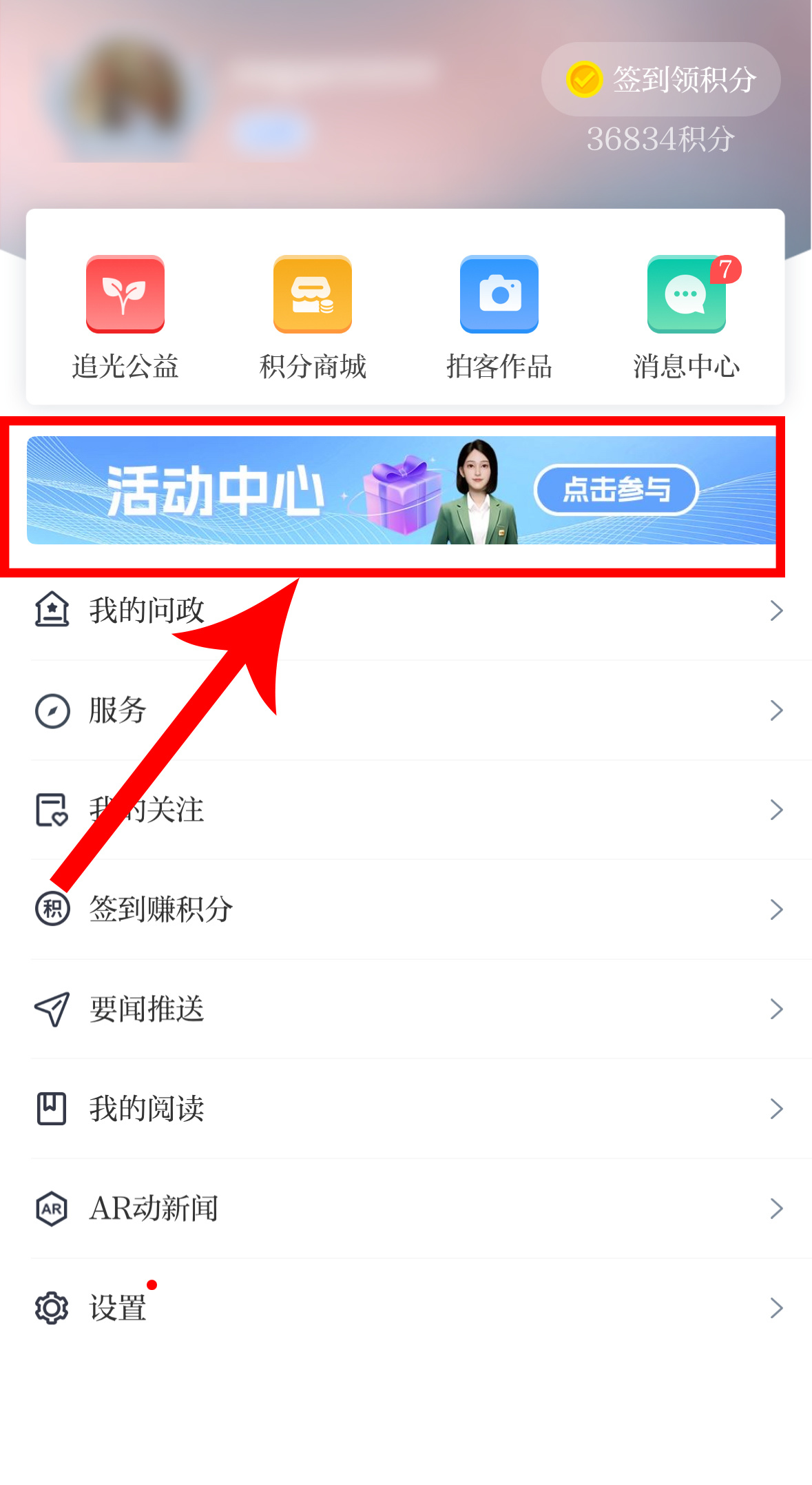 第二步,点击“活动中心”↓