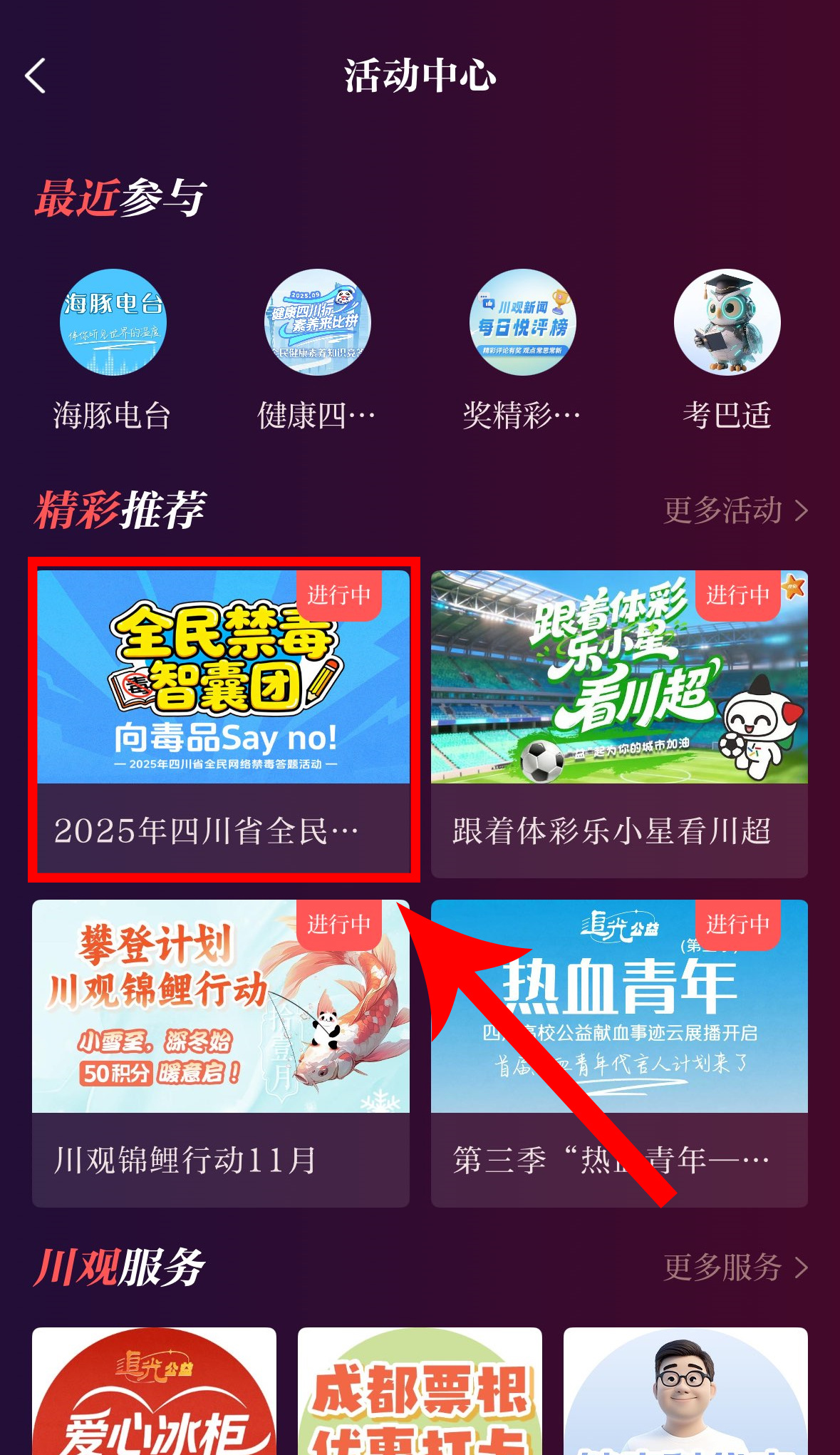 第三步,点击参与“2025年四川省全民网络禁毒答题活动”↓