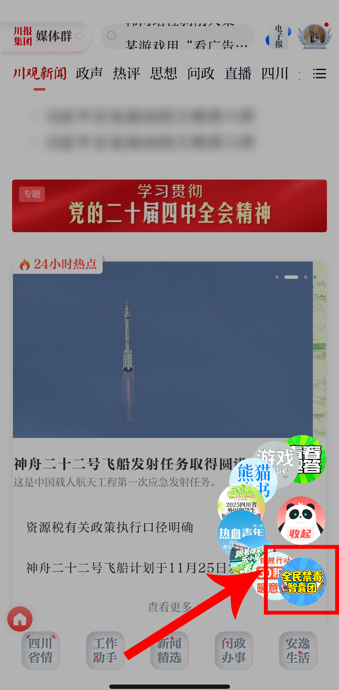也可以通过川观新闻首页悬浮球进入答题界面↓