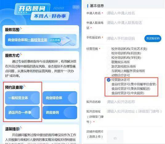 近日,“开店顾问”服务迎来升级,服务范围从原来“7+1”(即7类一般经营主体+商业综合体),拓展到“11+1+1”,新开通了游泳池新办,“食品经营许可”中单位食堂、集体用餐配送、中央厨房等特殊经营业态,以及酒店开办等服务,并对“开店顾问”服务过的企业进行标签处理,依托绿色通道加速审批。新功能的推出,将进一步满足企业在食品经营领域的多元化需求,为企业的开业筹备提供更加全面、细致的支持。