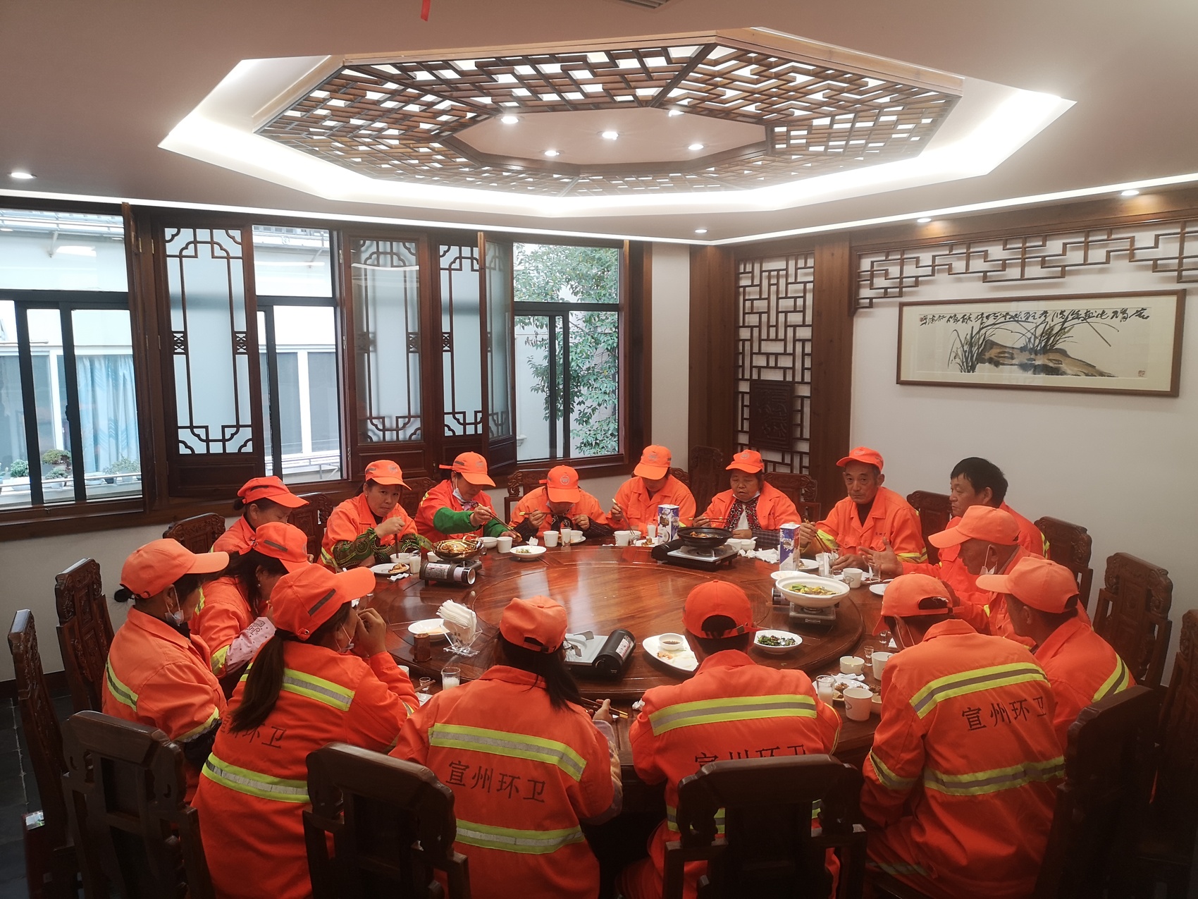 蒋克良邀请环卫工人到酒店免费用餐。受访者供图