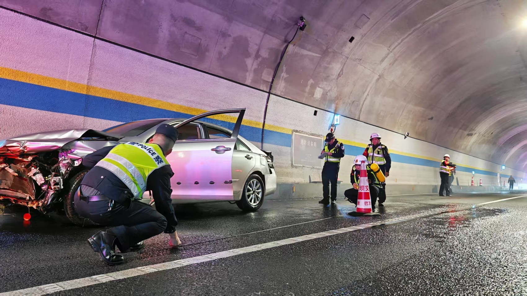 此次演练模拟小轿车在隧道内追尾自燃,司机受伤被困的紧急场景,并重点检验智慧运营管理系统在实战中的效能。