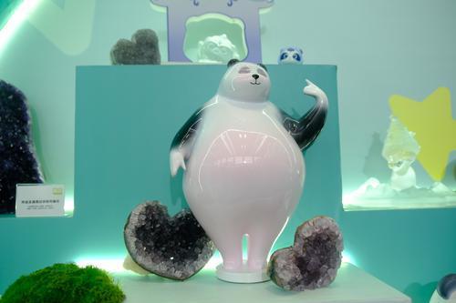 “熊猫家园·大熊猫文化创意大赛国际授权展”上的熊猫IP“粉嘟嘟 PinKoo”。(漆世平 摄)