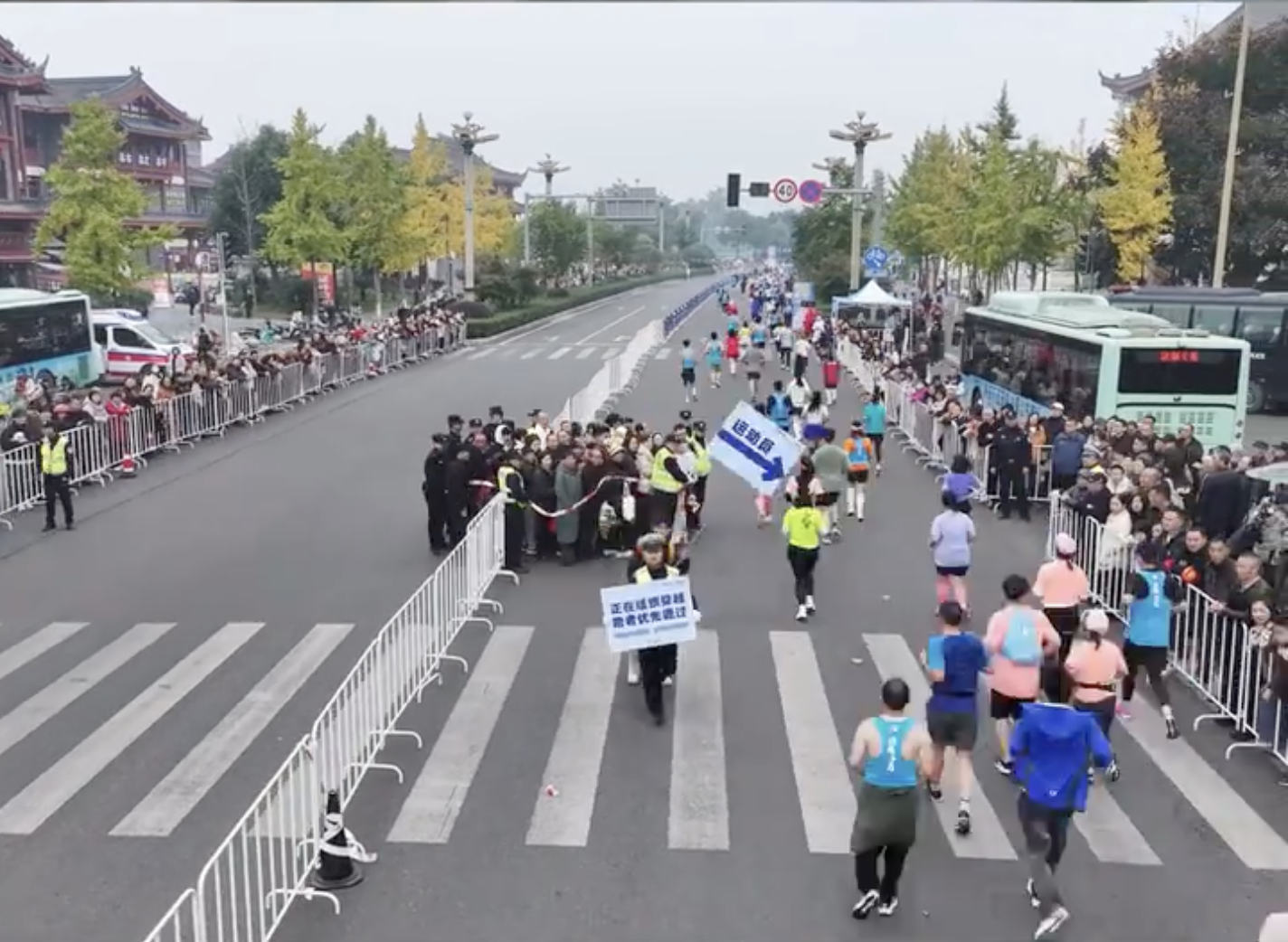 赛事期间,一段跑者与当地市民的互动在网络上引发共鸣。有跑者在视频中表达:“打扰你们了,谢谢理解”,而当地网友的回应同样暖心:“欢迎来眉山”。这种双向的理解与体谅,正是“岛式穿越”交通方案想要实现的理想状态。