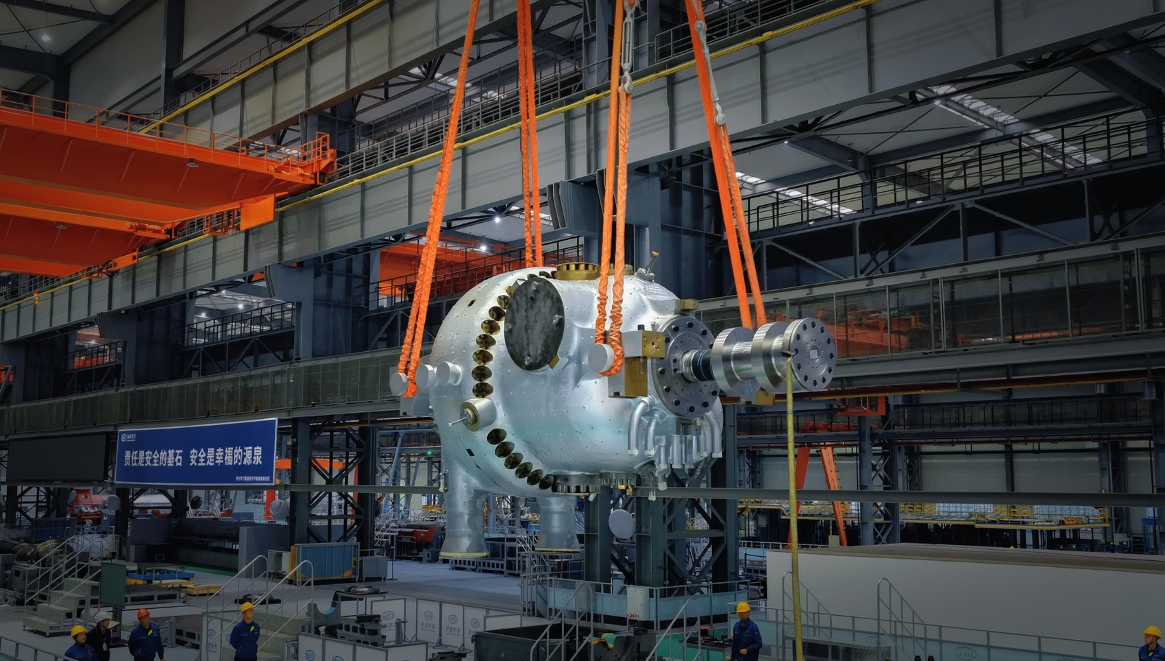世界首台套630℃超超临界二次再热国家电力示范项目主设备模块吊装。东方汽轮机供图