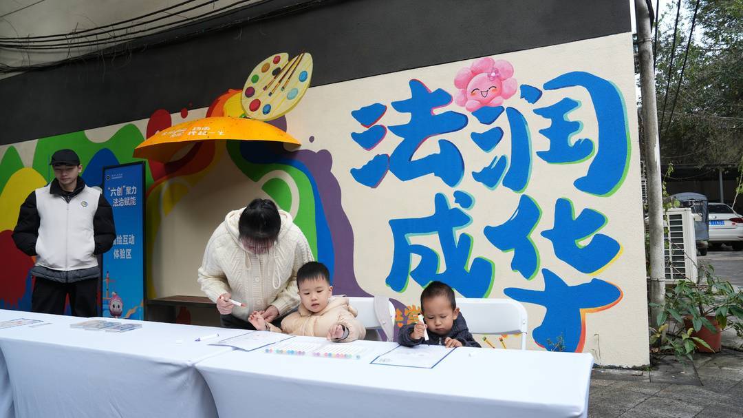 六大互动区域各显特色。律政法援咨询区里,四川伟旭律师事务所的律师团队组成“智囊团”,为居民详解“租房合同续签”“试用期工资计算”等实操问题;书香文创区中,“普法面人”“芙蓉花宝宝钩针”等文创产品前人头攒动,群众亲手体验面塑制作,将法治元素融入指尖创意;墙绘互动区的“芙蓉花宝宝填色”游戏,成为孩子们的欢乐天地,色彩涂鸦间播撒法治种子。“以前觉得法律很严肃,今天才发现,学法也能这么有烟火气。”参与活动的年轻人小林说。