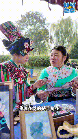 “我秀的是羊角花,这个是做衣服用的,羊角花代表幸福、美满。”