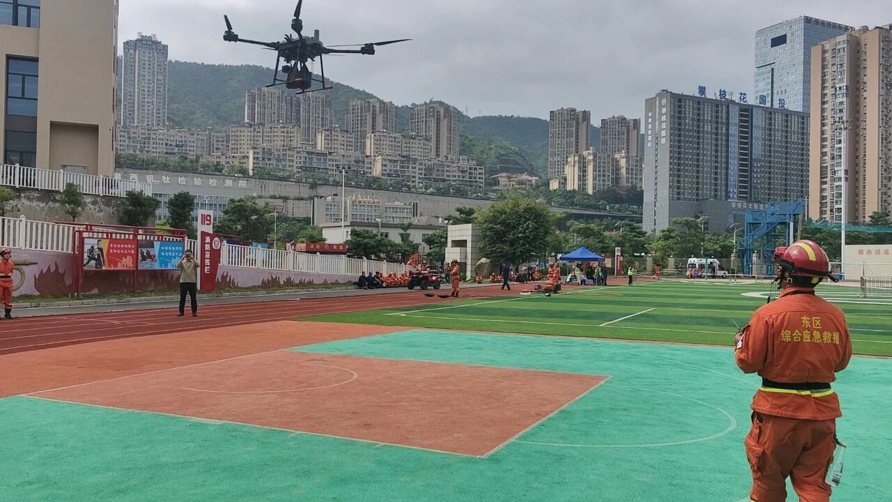 在四川省区域应急救援攀枝花基地现场教学无人机操作。