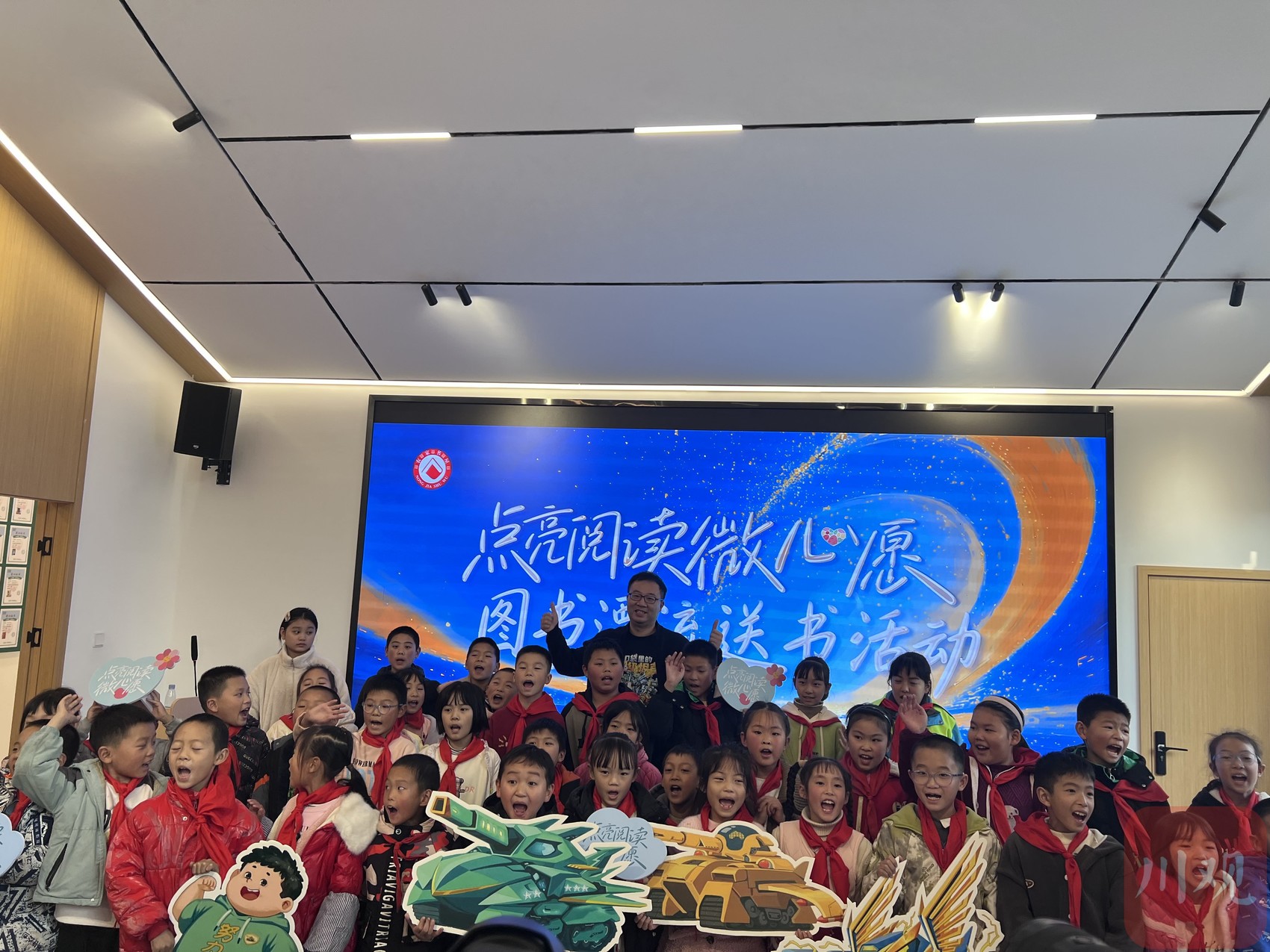 11月25日下午,射洪市瞿河镇中皇村农家书屋,射洪市2025年“点亮阅读微心愿”图书漂流送书活动正在这里举行,来自射洪市的50名乡村学生代表获赠了爱心图书。