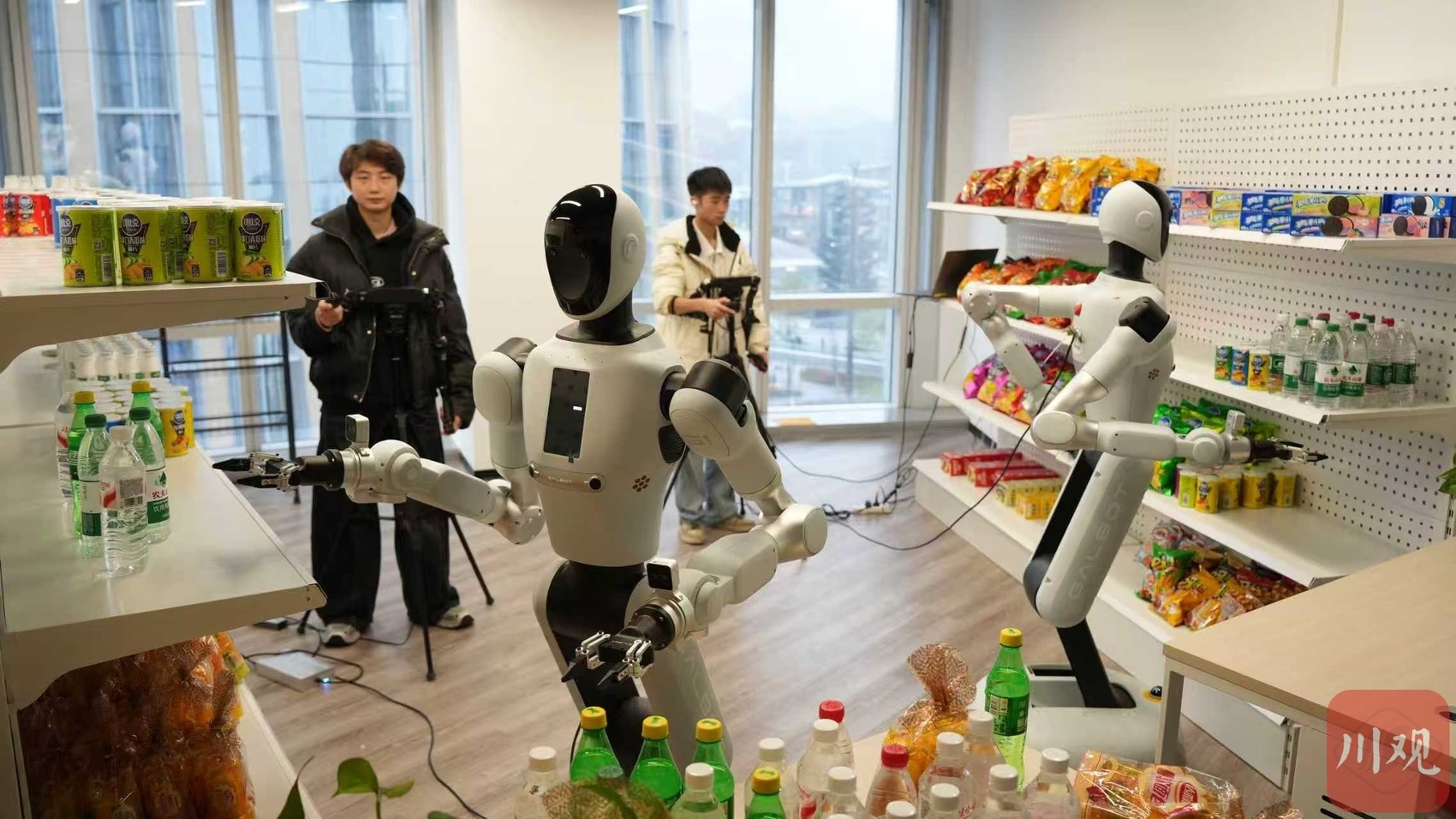 位于宜宾生态科技创新园的西南具身智能训练中心,人型机器人正在训练。