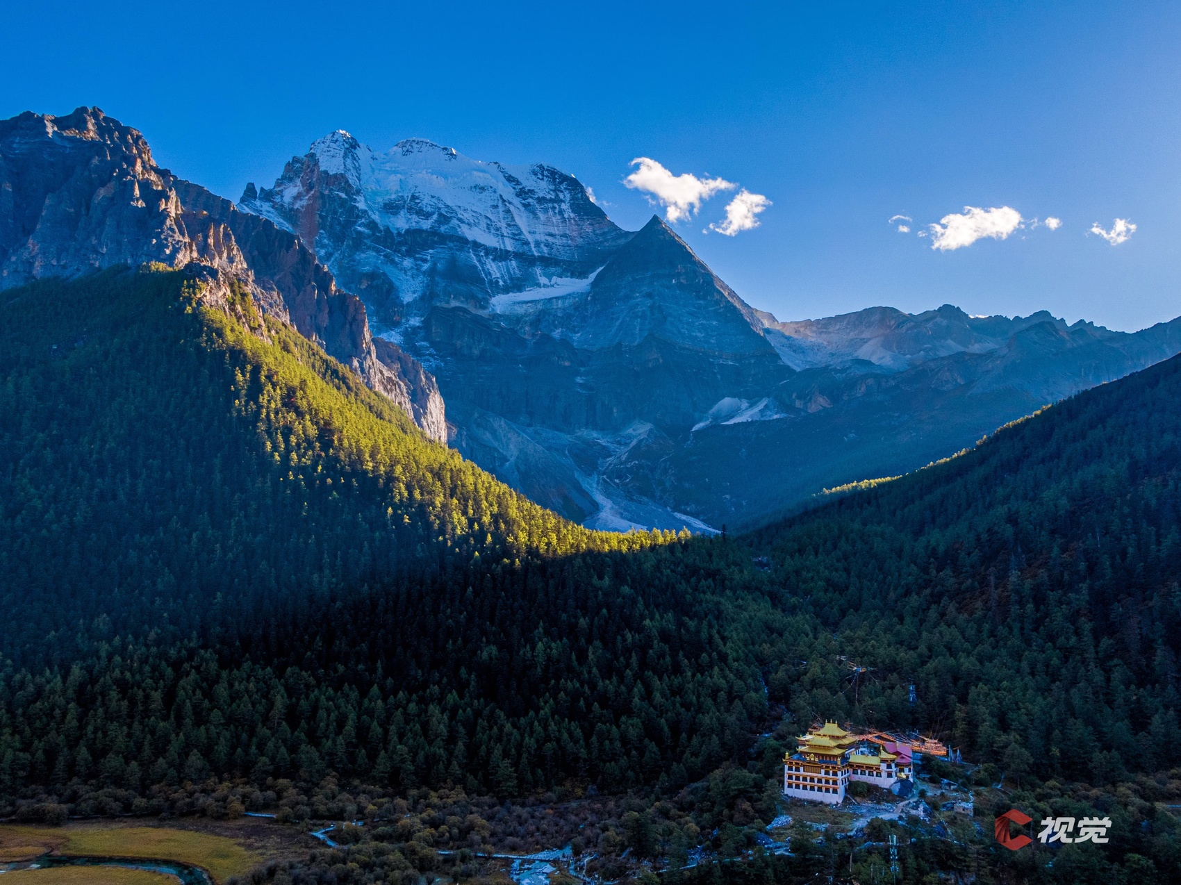 皑皑白雪的央迈勇与脚下尽染的金色彩林,构成了一幅秋日胜景图。C视觉签约摄影师 王治