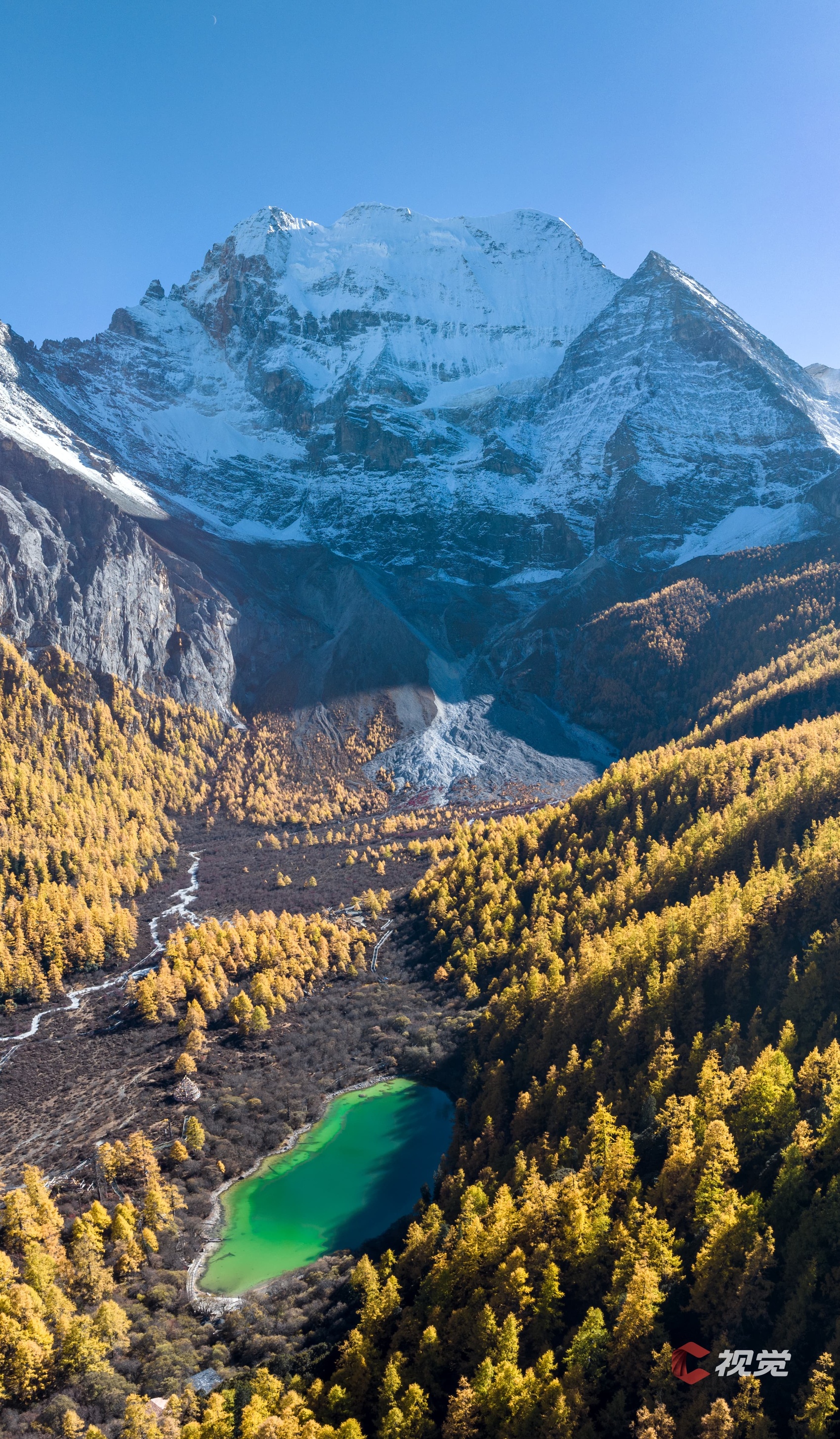 仙乃日雪山下的珍珠海,像镶嵌在彩林中的绿宝石。C视觉签约摄影师 王治