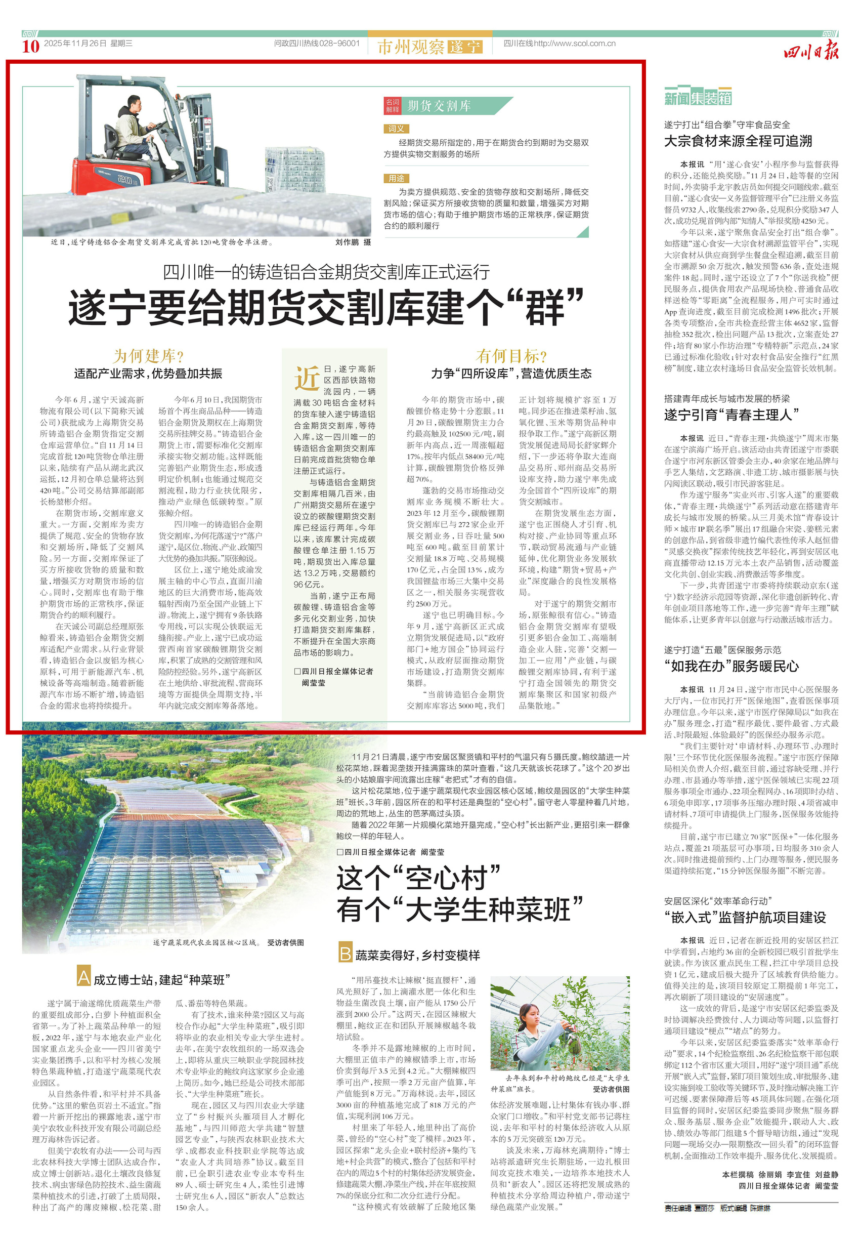 遂宁也已明确目标。今年9月,遂宁高新区正式成立期货发展促进局,以“政府部门+地方国企”协同运行模式,从政府层面推动期货市场建设,打造期货交割库集群。