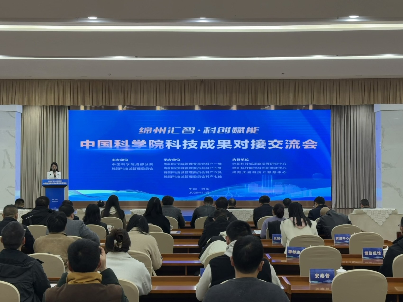11月26日,以“绵州汇智·科创赋能”为主题的中国科学院科技成果对接交流会在绵阳举行。活动吸引中国科学院有关专家、绵阳各县市区园区部门、产业链重点企业、投融资机构、技术转移服务机构、高校及科研平台代表等百余人参与,为院地协同、产研融合搭建起高能级对接平台。
