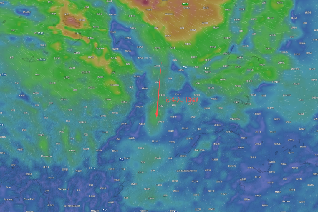 预计沙尘气团将于26日下午随干冷空气进一步东移南压,盆地有受沙尘传输影响风险,PM10浓度逐渐升高,川东北及成都平原偏北城市空气质量可能出现PM10小时轻度至中度污染。