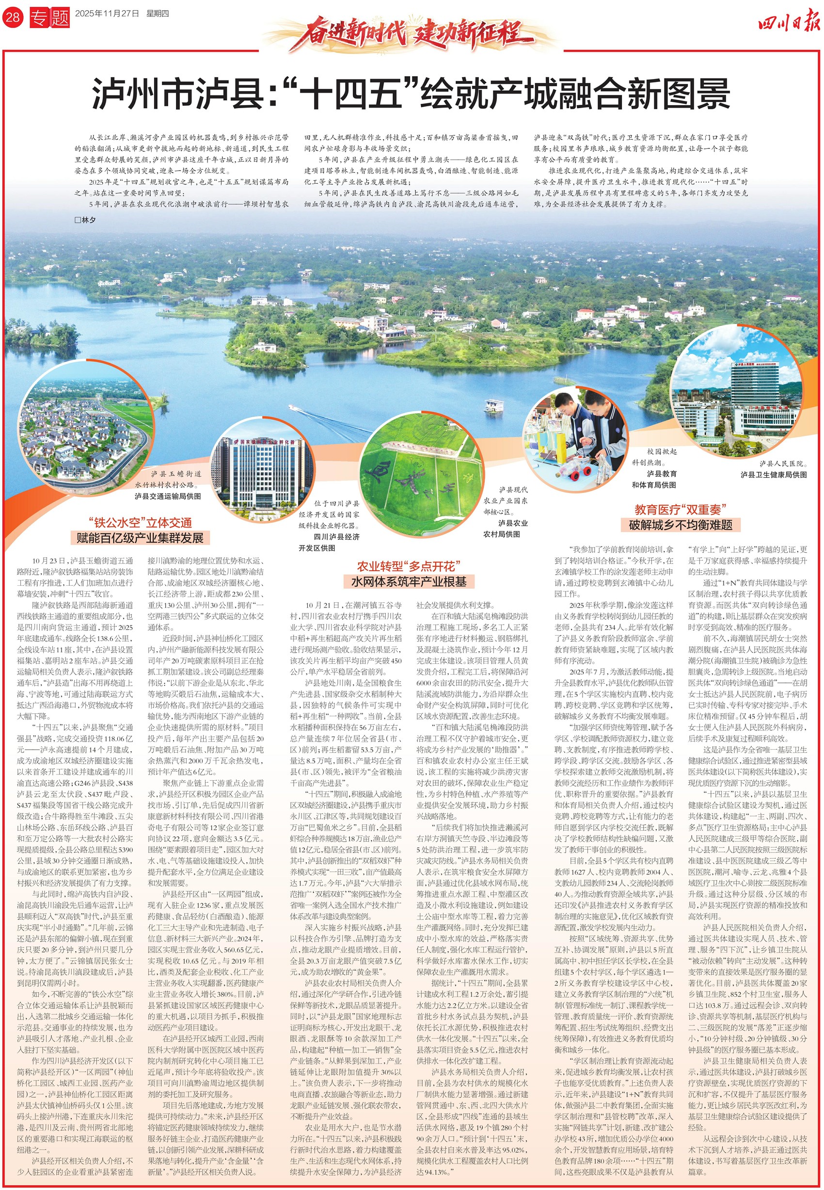 从长江北岸、濑溪河旁产业园区的机器轰鸣,到乡村振兴示范带的稻浪翻涌;从城市更新中拔地而起的新地标、新通道,到民生工程里受惠群众舒展的笑颜,泸州市泸县这座千年古城,正以日新月异的姿态在多个领域协同突破,迎来一场全方位蜕变。