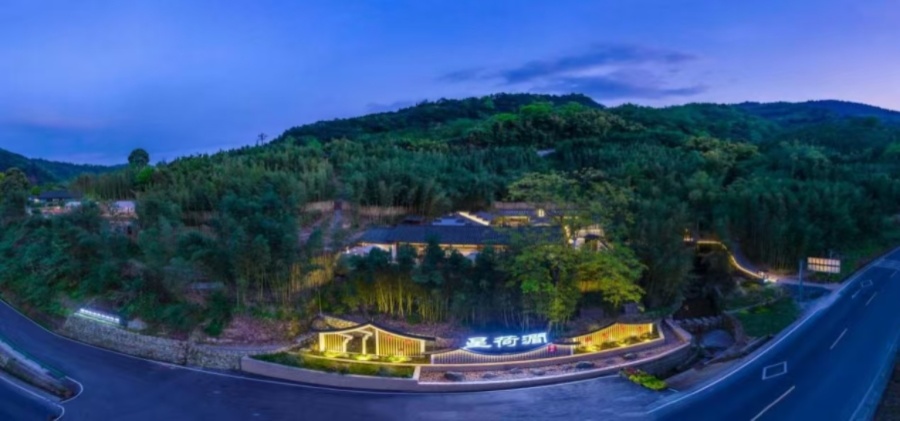 峨眉山市绥山镇荷叶村的星荷涧民宿集群夜景。