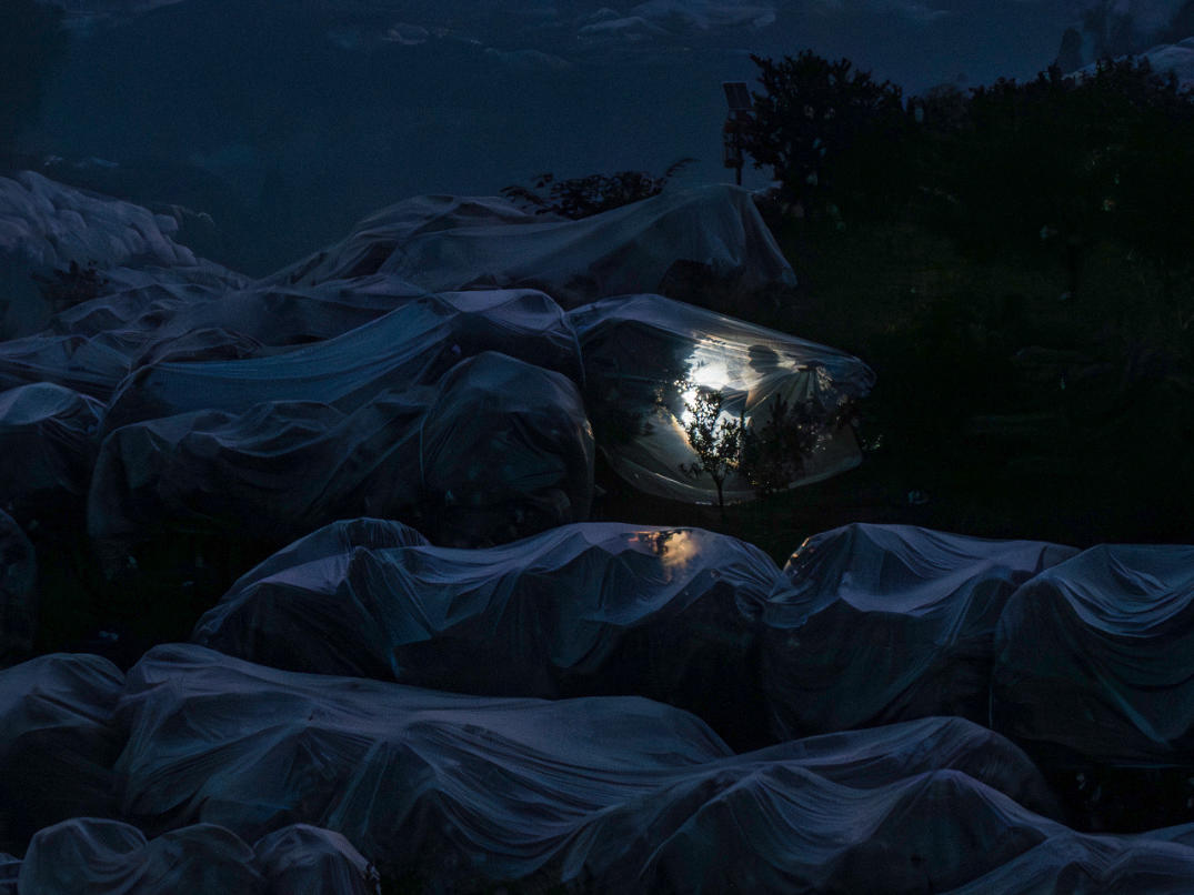 当夜幕降临,四川德阳罗江区鄢家镇新安堂村,果农陈川家安静的果园开始热闹起来。夜色笼罩中,手电筒光柱摇曳,人们弯腰前行,欢声笑语与偶尔的犬吠交织,一直持续到深夜。