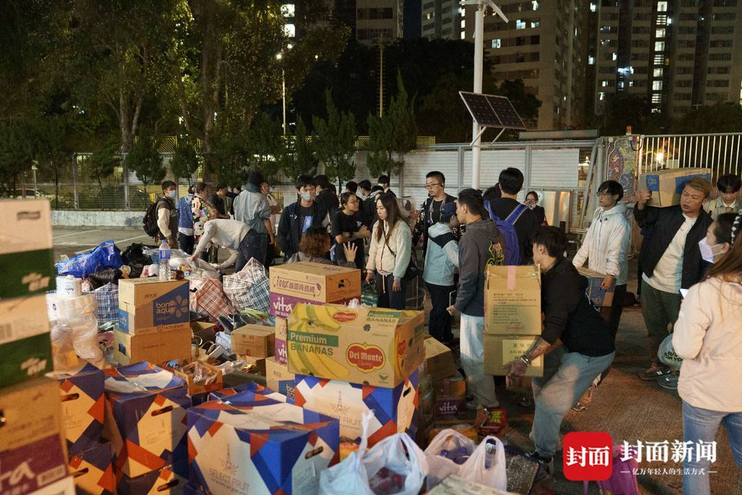 11月27日凌晨志愿者为宏福苑受灾居民送来物资。