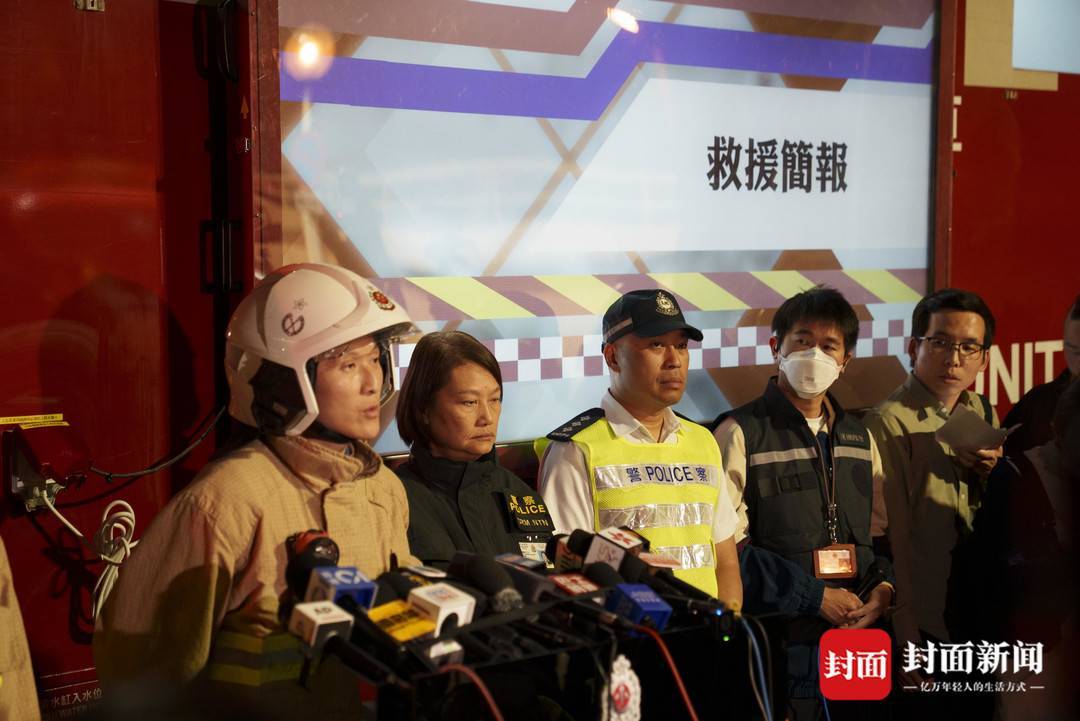 11月27日凌晨6时,香港消防处和警方在火灾外围召开的救援简报会