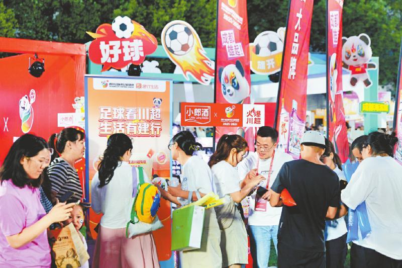 “川超”赛事期间,球迷在赛场周边展台前扫码领优惠。